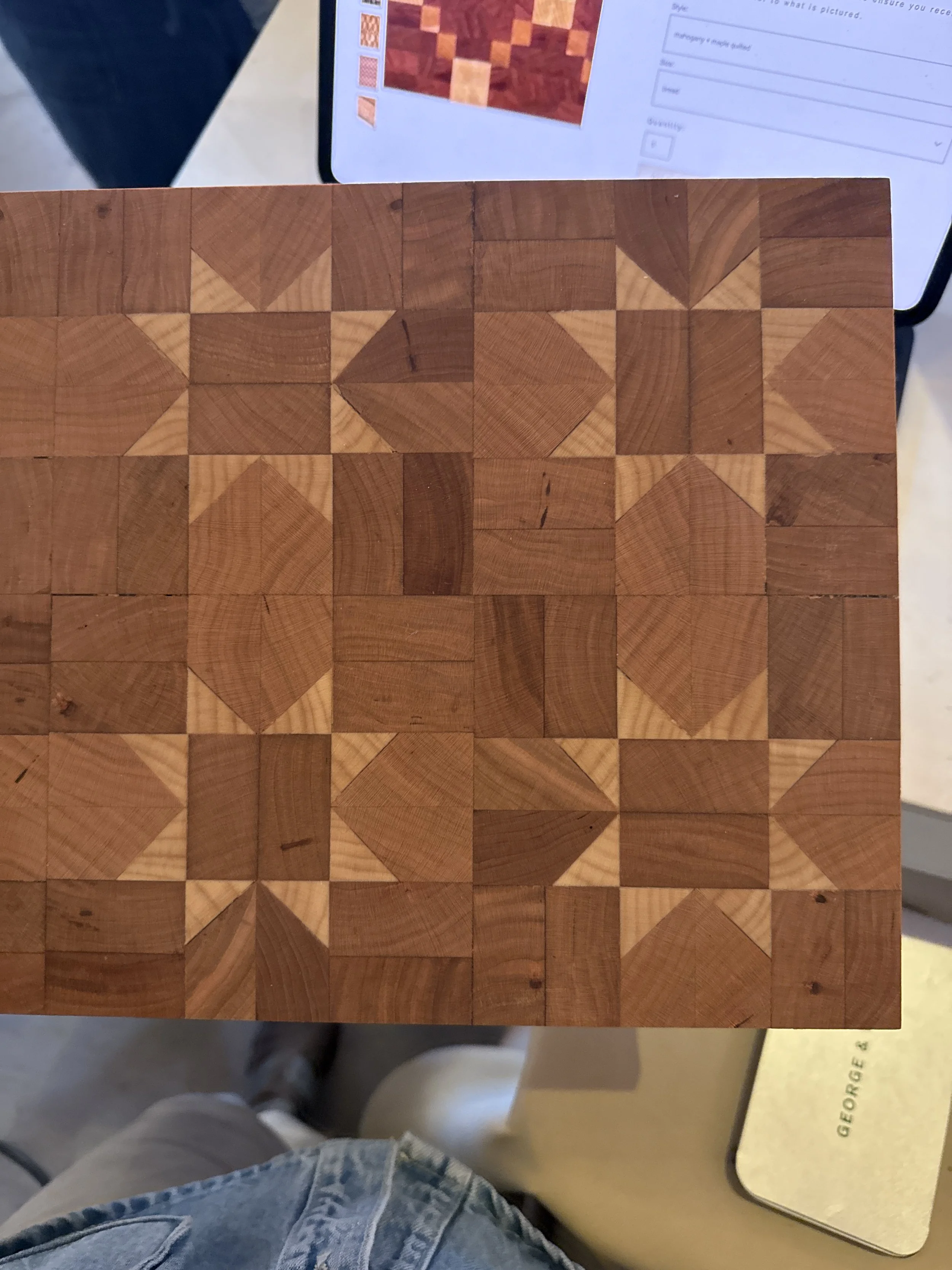 Shop Custom Order Justyna $240.00 Sold out Cherry and Mahogany diamond quilt $350.00 walnut and maple chain quilt $350.00 maple and cherry leaf check $200.00 walnut and maple staggered $200.00 Chain Quilt $300.00 Walnut Crumb Brush $50.00 Walnut with Blonde Horsehair Crumb Brush $50.00 Mahogany + Maple Chain Quilt Baguette Box $300.00 Custom Order from $200.00 Gift Card from $25.00